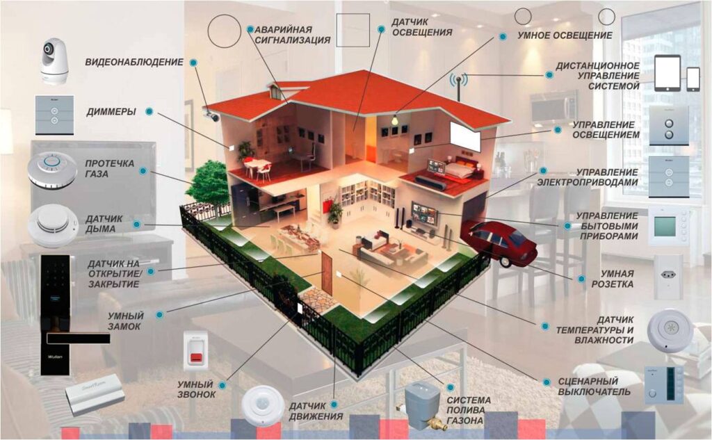 Сегодня система «умный дом» осуществляет управление освещением, отоплением и вентиляцией, охраной и видеонаблюдением, аудио- и видеоаппаратурой, бытовой техникой, климатом в зимнем саду, поливом газона и очисткой бассейна, открытием форточек и ворот, перекрытием газа и воды в случаях аварии и т.д. Участие людей при этом сводится к минимуму.
